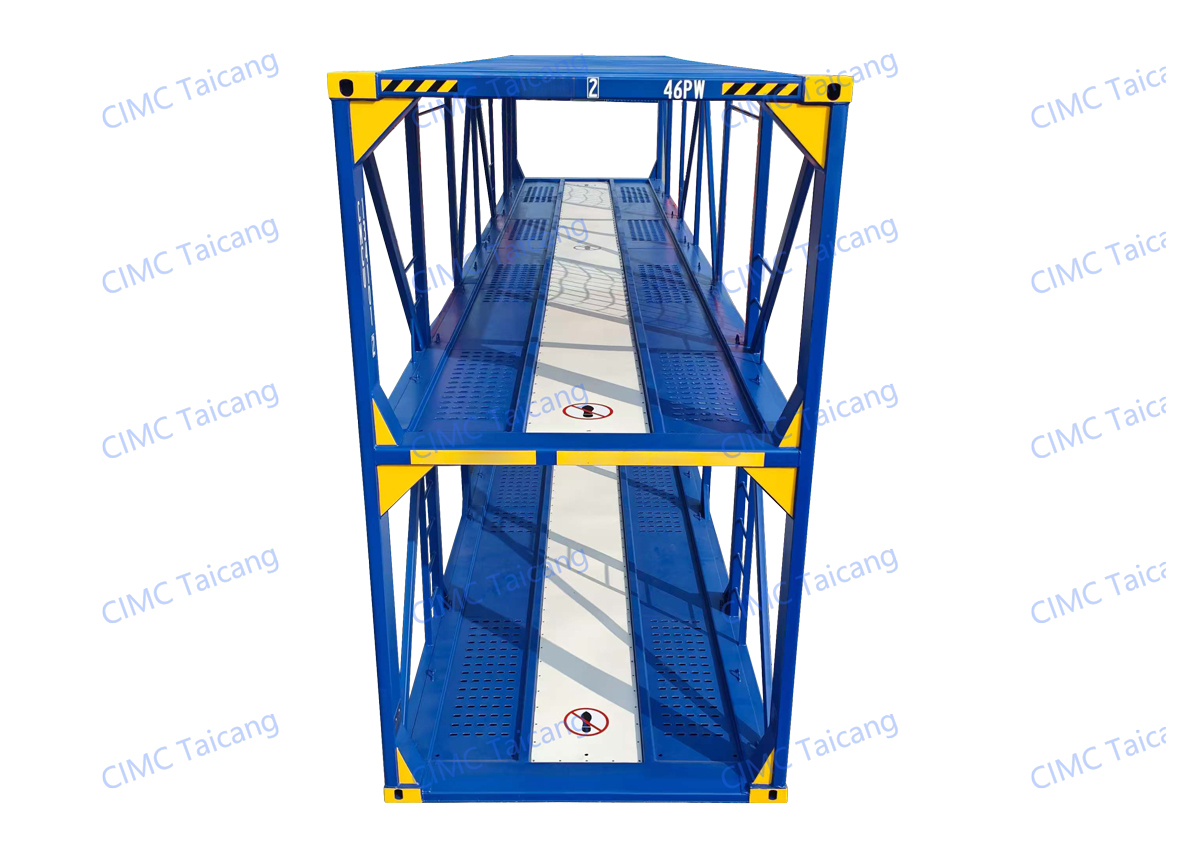 Car carrier is working as containerization logistic and stocking solution for vehicle with efficient handling and reliable transportation. CIMC Taicang can provide various designs of car carriers, including single-deck or double-deck, container or rack.